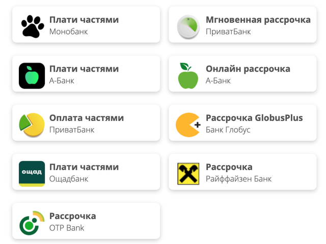 - Оплата частинами ПриватБанк (для оплати, виберіть Оплата картою Visa, Mastercard - WayForPay)
